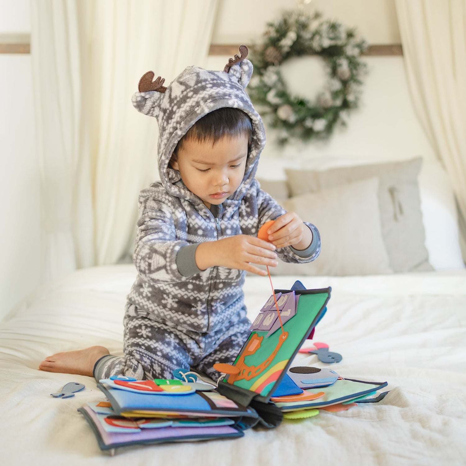 Designed by developmental specialists, our books are packed with engaging activities to keep little ones entertained for hours. Plus, they’re meticulously handmade without a single drop of glue—completely sewn.
